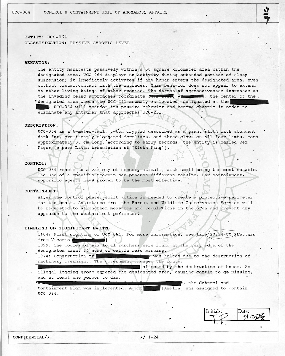 Compilation of documents from the Control and Containment Unit of Anomalous Affairs with additional information related to The King of the Sloths Case.